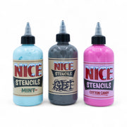 Nice Stencils is a high-quality, long-lasting stencil application cream designed to securely hold stencils in place. It features a refreshing mint or cotton candy scent that provides calming effects, especially after shaving the skin's surface. Plus, it's affordably priced, making it a great choice for anyone looking to achieve precise stencil applications.